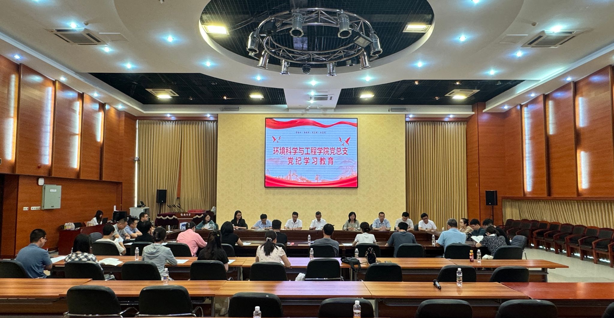 2024年5月24日,环境科学与工程学院在海甸校区思源学堂多功能厅召开理论学习中心组学习(扩大)会,深入学习领会习近平总书记关于全面加强党的纪律建设的重要论述,并原原本本学习了《中国共产党纪律处分条例》第一章、第二章内容,推进党纪学习教育走深走实。党总支书记王旭,院长徐顺清,执行院长孙轶斐、副院长葛成军、廖建军及学院党员教职员工参加会议;会议由学院党总支书记王旭主持。