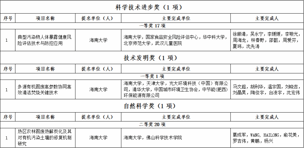 徐顺清教授牵头完成的“典型污染物人体暴露健康风险评估技术与防控应用”成果获海南省科学技术进步奖一等奖;
