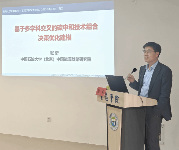 1月8日,yl7703永利邀请到中国石油大学教授、中国能源战略研究院院长张奇到海南大学开展学术交流,做了题为“基于多学科交叉的碳中和技术组合决策优化建模”的讲座。资源环境监测评价与规划管理创新团队负责人贾培宏教授主持本次交流会,环境科学与工程学院徐顺清院长、孙轶斐执行院长、王旭书记出席了本次会议,参会师生对张奇教授的到来表示了热烈欢迎。