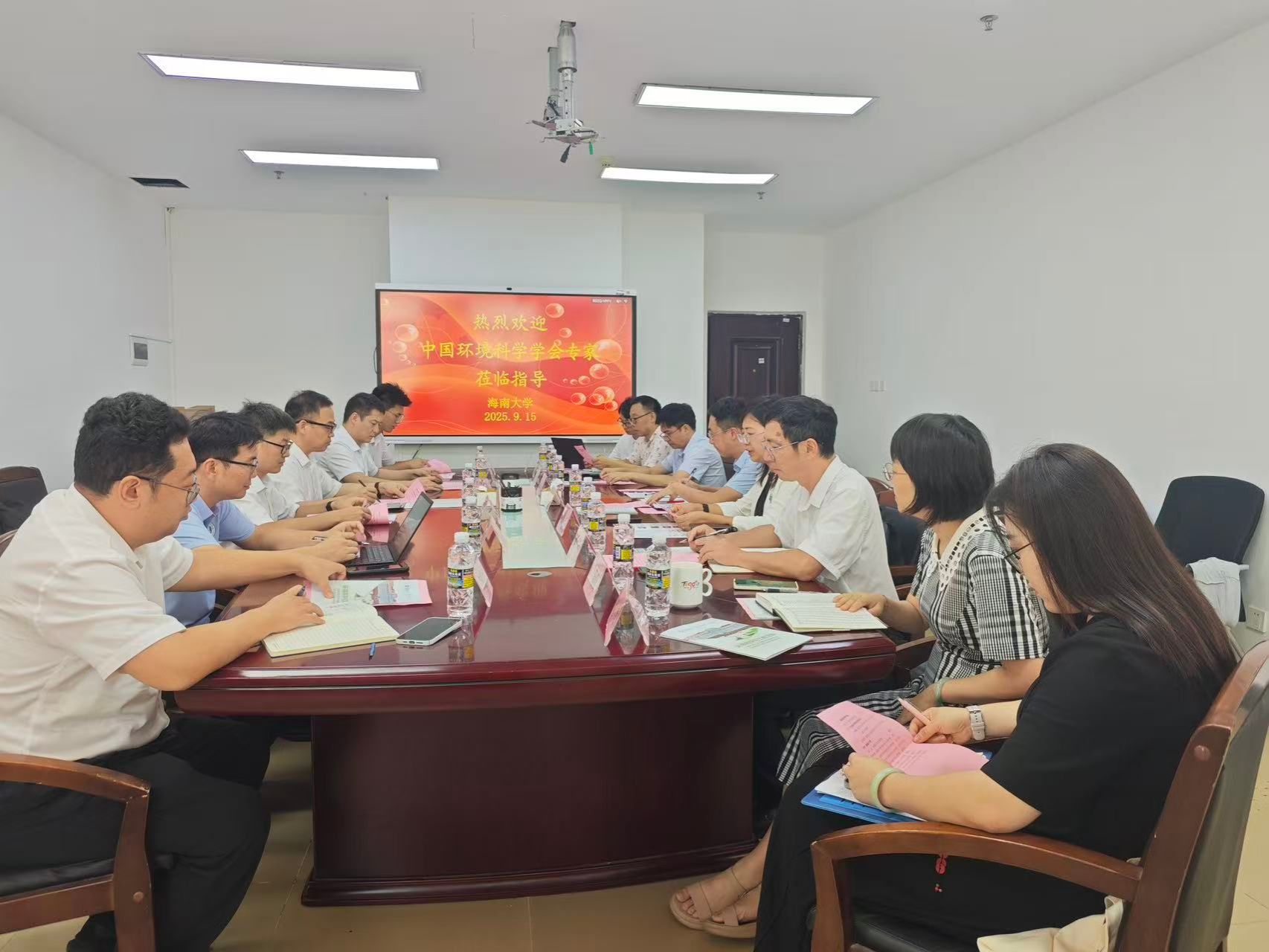 2025年9月15日,中国环境科学学会副理事长兼秘书长夏祖义一行莅临yl7703永利调研指导,并在农科楼主楼401会议室举行座谈会。海南大学党委常委、副校长岳文,海南省环境科学学会秘书长莫凌,合作企业海南中远海运环保科技有限公司党支部书记李超鹏出席会议。学院院长徐顺清、孙轶斐、党总支书记王旭等学院领导及部分教师参加座谈会,执行院长孙轶斐主持会议。